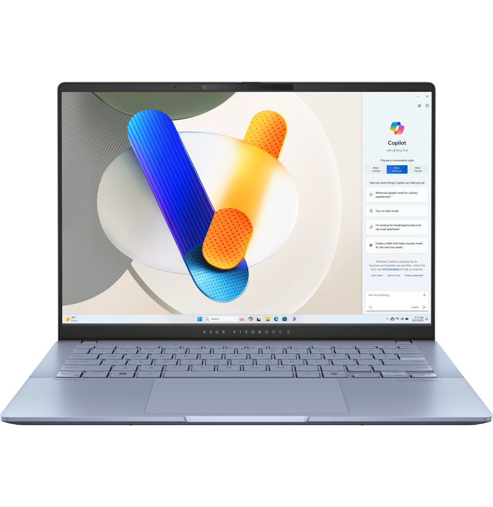 Avec son design épuré, son clavier rétroéclairé et son poids plume de 1,30 kg, le Vivobook S 14 OLED est un compagnon de choix pour les professionnels et les étudiants en déplacement. Disponible en deux couleurs élégantes, Neutral Black et Mist Blue, il allie style et robustesse grâce à sa construction monocoque. L’ordinateur fonctionne sous Windows 11 Home, offrant une interface intuitive et des fonctionnalités améliorées pour une productivité optimisée.
